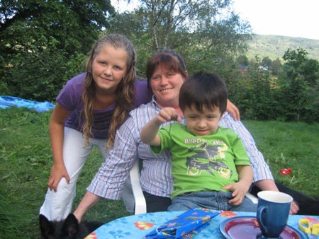 Familien Ivarsen! Et av de aller første bildene av oss 3 samlet. I vår egen hage. Fotografert av: Eva Jakobsen